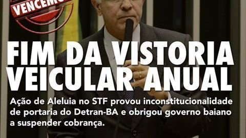 DERRUBAR A VISTORIA VEICULAR ANUAL DO DETRANO STF, provou a inconstitucionalidade da vistoria veicular anual que o Detran fazia na Bahia, estava cobrando e forçando o povo a essa escravidão